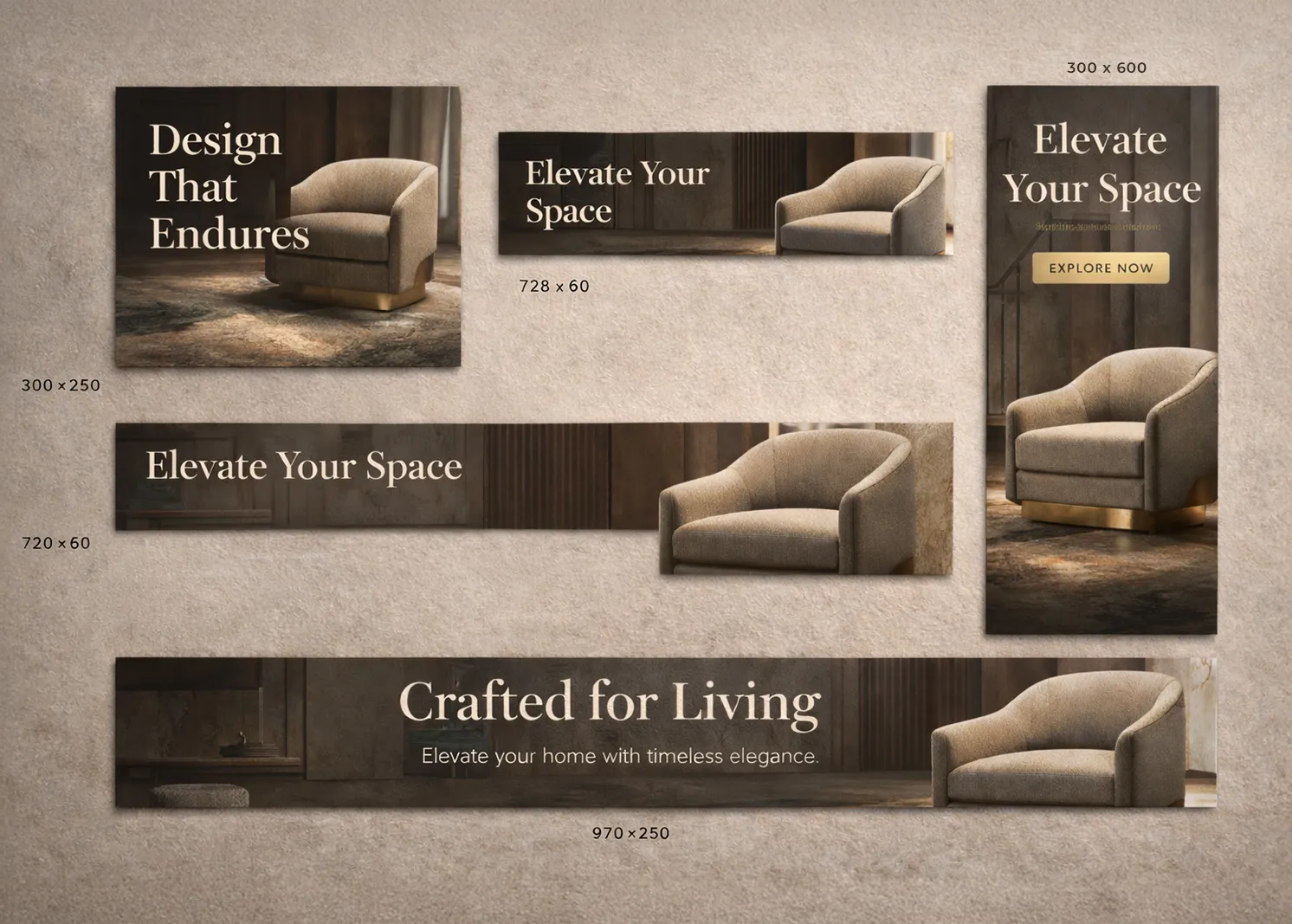 Campaign-ready banners designed for websites, retargeting, Google Display and digital promotions.